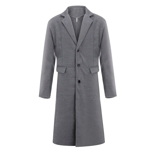 Korean Trend Men's Loose Casual Single-breasted Overcoat Autumn Winter Fashion New Long Sleeve Woolen Long Coat 2023