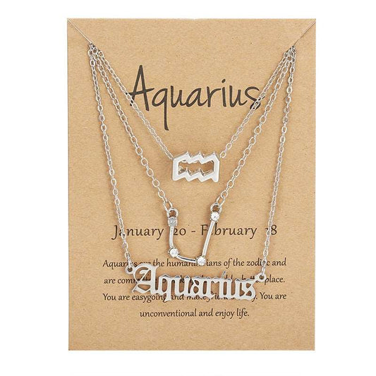 3Pcs/set 12 Zodiac Sign Multi Chain Necklaces For Women with Pendant Chain Choker