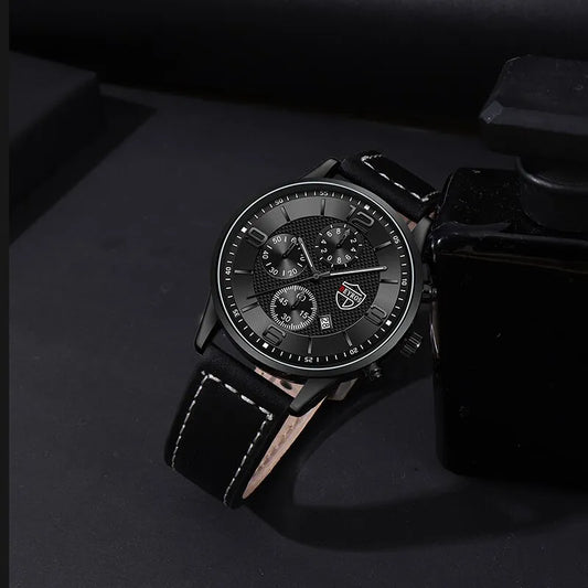 3PCS Set Fashion Mens Calendar Watches Luxury Men Business Black Stainless Steel Quartz Watch Male Necklace Bracelet Wristwatch