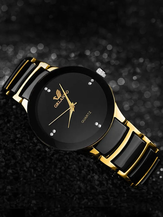 3PCs Fashion Personalized Men's Steel Band Quartz Watch with Bracelet Set