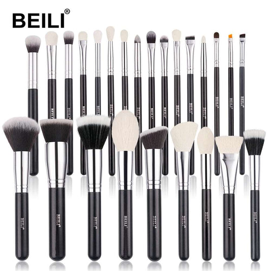 Black Makeup Brushes Set Professional Natural Goat Hair Brushes for Foundation, Powder, Contour, Eyeshadow, and More