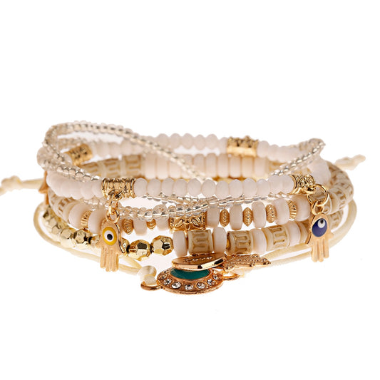 Vintage Bohemia Women Bracelets Set with Stone Beads and Tassel Pendants Bracelets 4Pcs/Lot