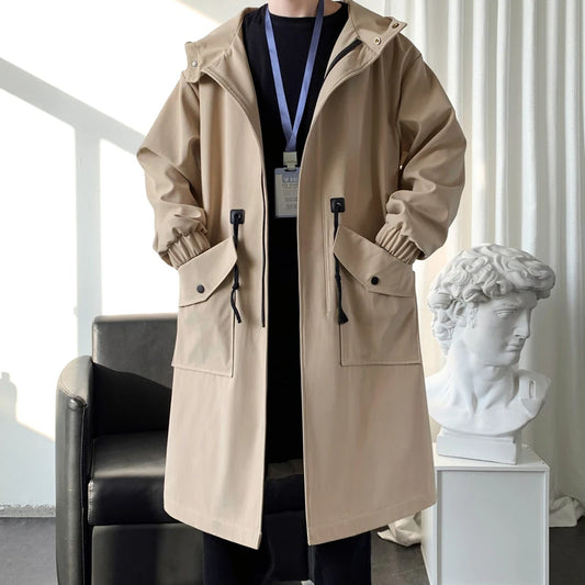 Streetwear Spring Autumn Hooded Trench Coats Men Fashion Windbreaker Long Men's Jacket
