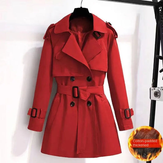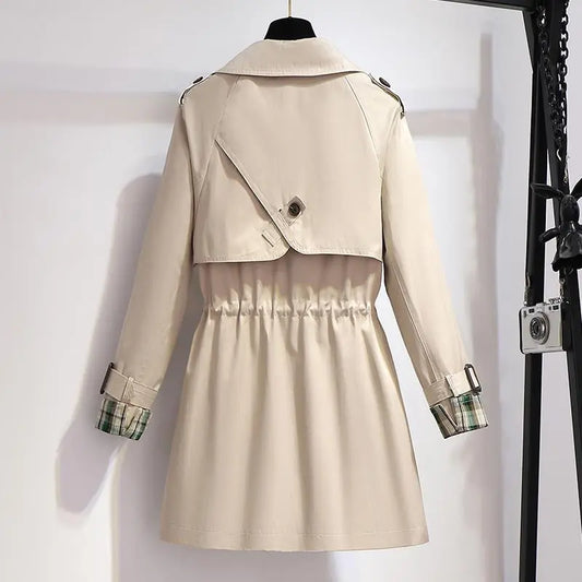 Spring and Autumn Fashion Women's Mid-length Trench Coat with Double-Breasted Design, Lining, and Drawstring Waist, Formal Jacket for Females