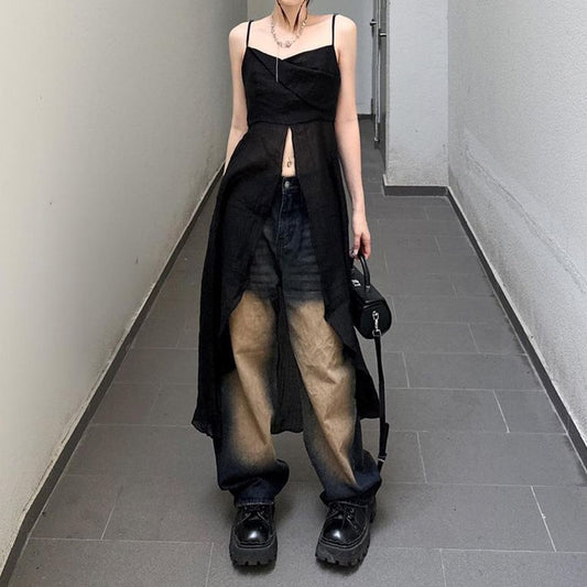 Goth Dark Sheer Mesh Patchwork Cyber Y2k Bodysuits Hollow Out Moto Biker Bodycon T-shirts Women Gothic Punk Long Sleeve Bodysuit