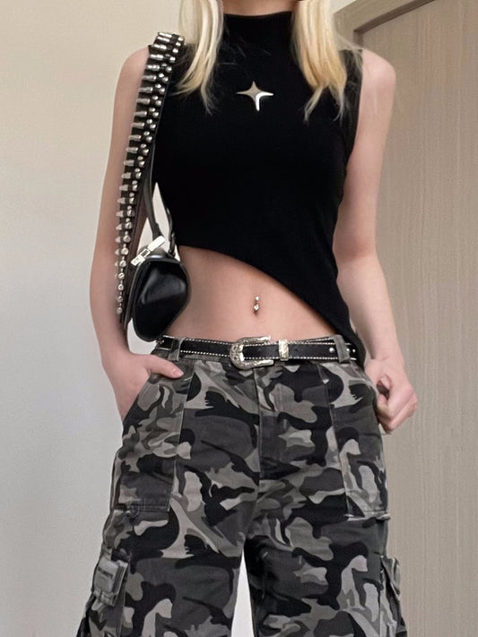 Grunge Print Sleeveless Sexy Tank Top for Women Ribbed Knit Vest Streetwear Aesthetic Clothing Female Crop Top Women