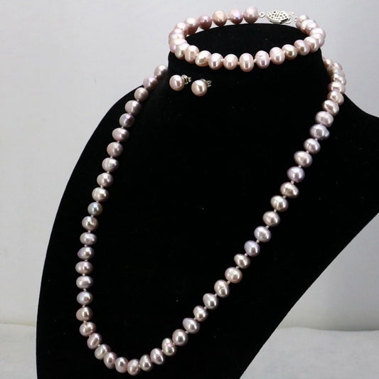 Purpel Pearl Necklace Sets Fish Clasp 7-8mm Necklace 18 Inch Bracelet 7.5 Inch Earring Women Jewelry Making Design