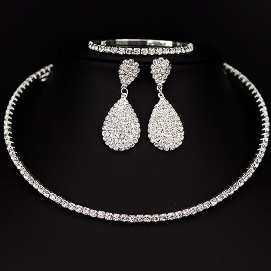 Hot Selling Bride Classic Rhinestone Crystal Choker Necklace Earrings and Bracelet Wedding Jewelry Sets Wedding Accessories X164