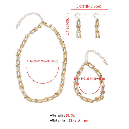 New Design Personality Chains Jewelry Set Unique Punk Statement Chains Necklace Bracelet Earring For Women