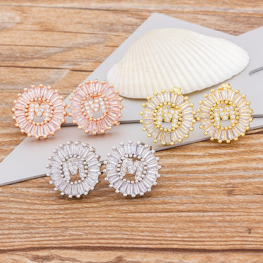Hot Sale 26 Initial Letter Earrings Personal Gift for Women Cute Alphabet Zircon White/Rose Gold Stud Earrings Jewelry