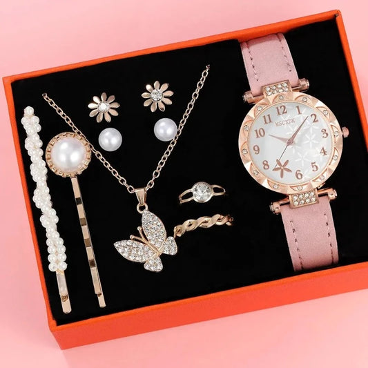 10pcs Women's Watch Set Fashion Casual Round WOMEN'S Quartz Watch Fashion Hairpin Earrings Necklace Ring Watch Set