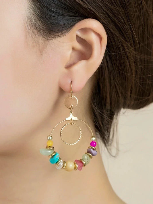 Beaded Round Drop Earrings for Women Crystal Mixed Round Circle Earrings Hollow Cutout Dangle Earrings