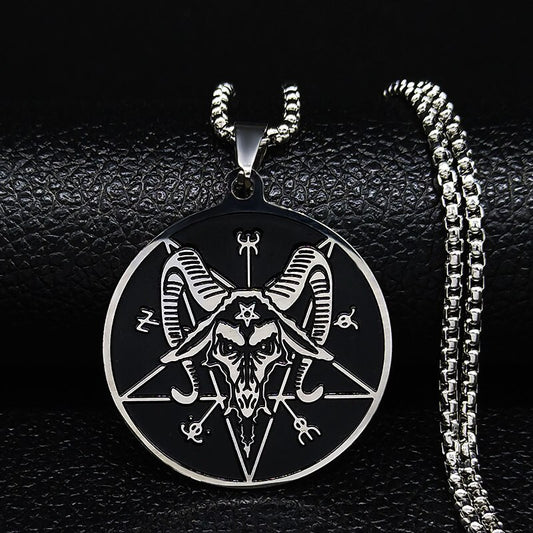 Silver Color Statement Necklace for Men Stainless Steel Satan Sheep Head Necklace Jewelry