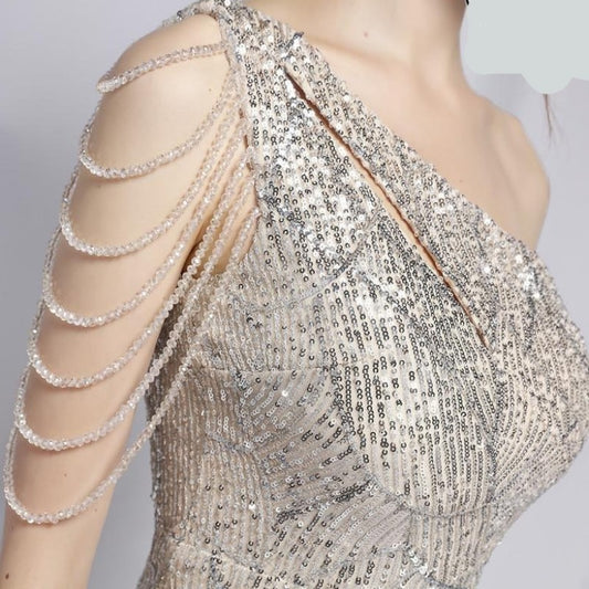 One Shoulder Wrap Split Thigh Sequin Formal Dress Important Occasion Dress