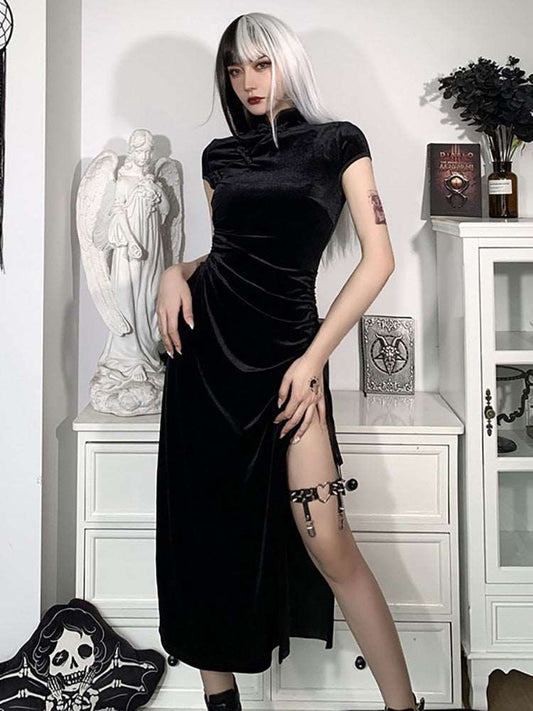 Black SlitHem Bodycon Goth Style Dark Romantic Sexy Evening Dress