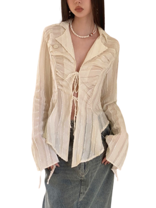 Step into the Enchanting World of Fairycore with our Lace Up Women Blouse
