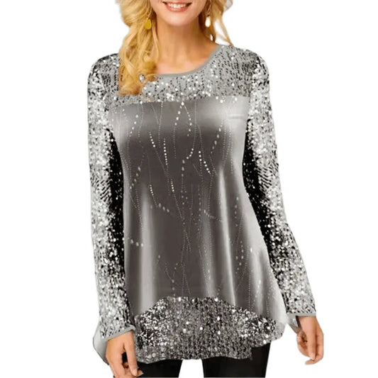 Fashion Women Long Sleeve Patchwork Sequins T-Shirt 2023 Spring Autumn Shining Tunic T Shirt For Women Smock Top Y2K Tshirts