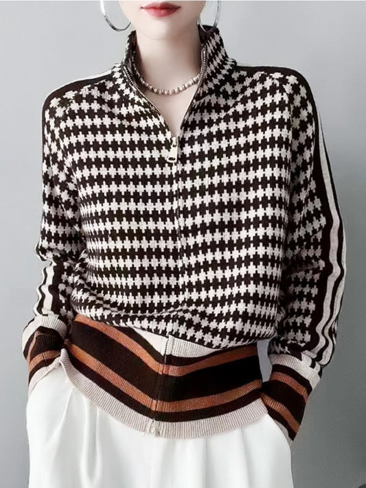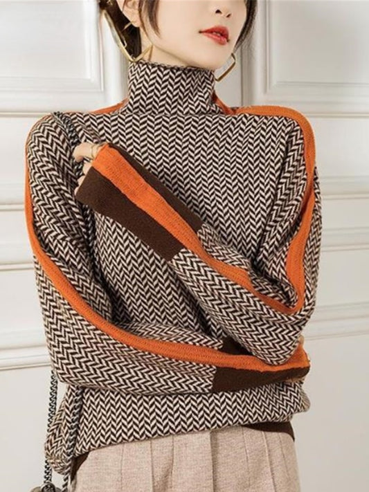 Winter Women's Turtleneck Sweater - Retro Contrast Color Cardigan, Warm Pullover, Elegant Top for Commuter, Loose Casual Women's Top