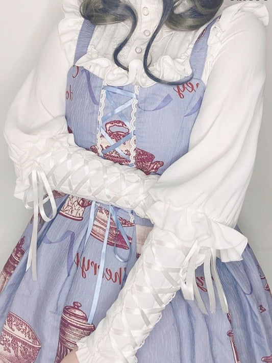 Vintage Lolita Style Gothic Y2k Shirts for Women - Sweet Lace Ruffles Blouses with Gigot Sleeves, Victorian Bandage Tops for Girls, Blusas Mujer