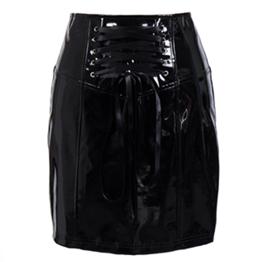Shop the Sensational S-3XL Black High Waist Skirt: Sexy Club Latex PVC Leather Pencil Skirt with Lace Detailing