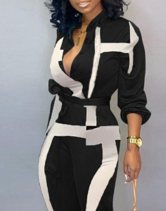 Jumpsuits for Women 2023 Elegant Autumn Fashion Abstract Print Pocket Decor Casual Long Sleeve Tied Detail Jumpsuit with Belt