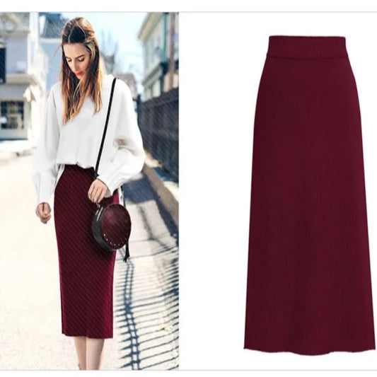 Autumn Winter Knit Pencil Skirt Women High Waist Skirts Womens Knited Split Midi Skirt For Women Autumn 6XL