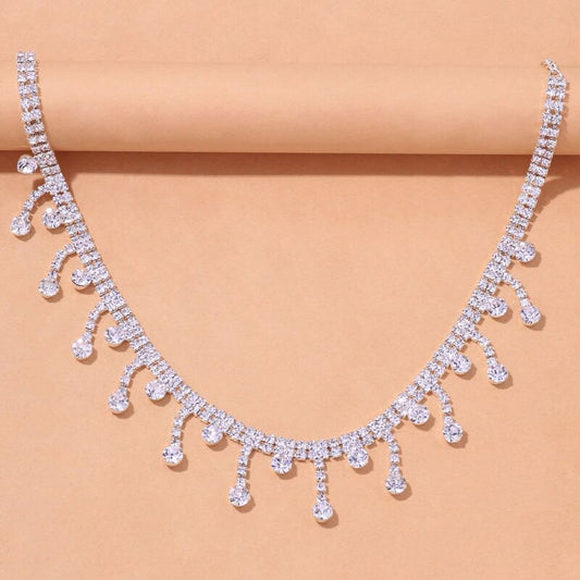 Stonefans Fashion Short Tassel Rhinestone Necklace Choker for Women Statement Water Drop Pendant Choker Collar Jewelry Gift
