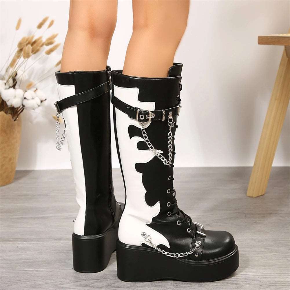 Autumn Gothic Halloween Mid Calf Boots Women Wedges High Heels Punk Street Platform Boots Female Cosplay Shoes For Woman