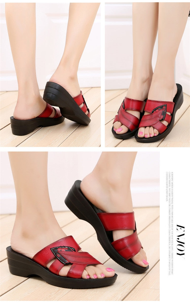 GKTINOO Women Slippers Shoes Genuine Leather Casual Slides Designer Platform Heel