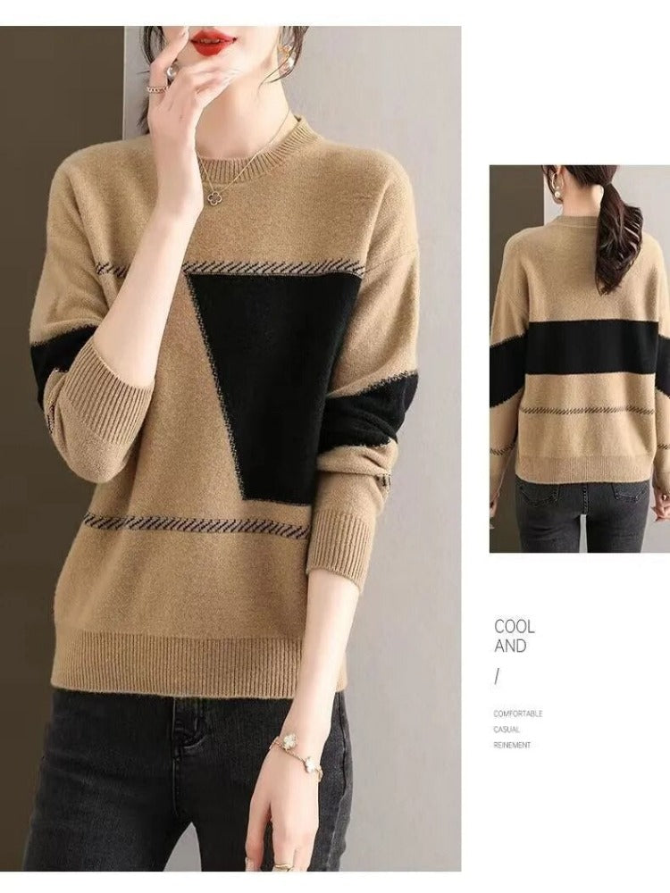 SEO Keywords: Korean Fashion Sweater, O-Collar Pullover, Color Blocking, Autumn Winter Knitting Sweater, Plush and Thickened, Bottoming Shirt, Office Lady Style, Patchwork Pattern, Women's Fashion, Trendy Outfit, Fall Winter Apparel.