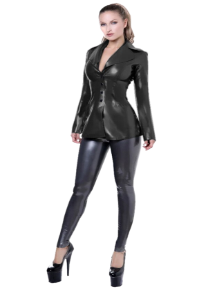 Latest Fashion Women Shiny PVC Suit Jacket with Button Details Fashion Buttons Shiny PVC Suit Jacket for Women Sexy Faux Leather Coat Dress