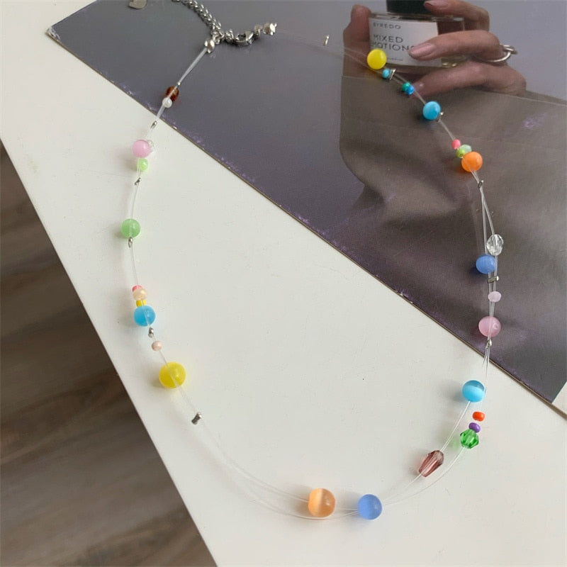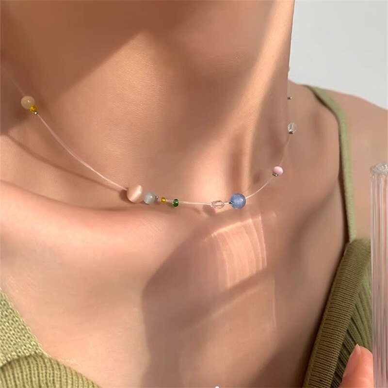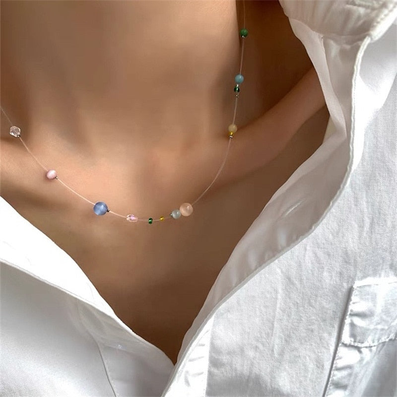 Mermaid's Tears Necklace Ocean Sea Invisible Transparent chain Fishing Line Short Chain Beach Pendants Transparent Necklaces