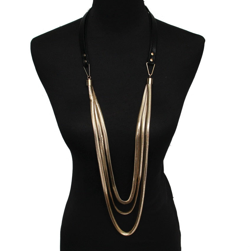 Multi layers Leather Snake Chains Necklaces Women Thick Chain Pendants