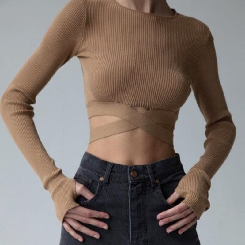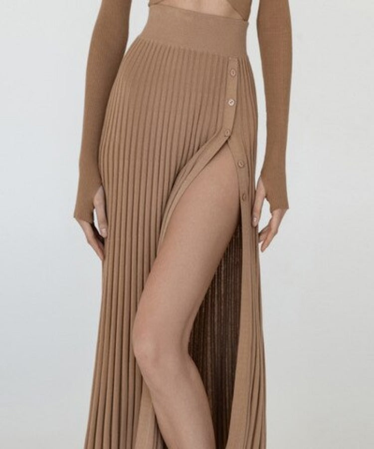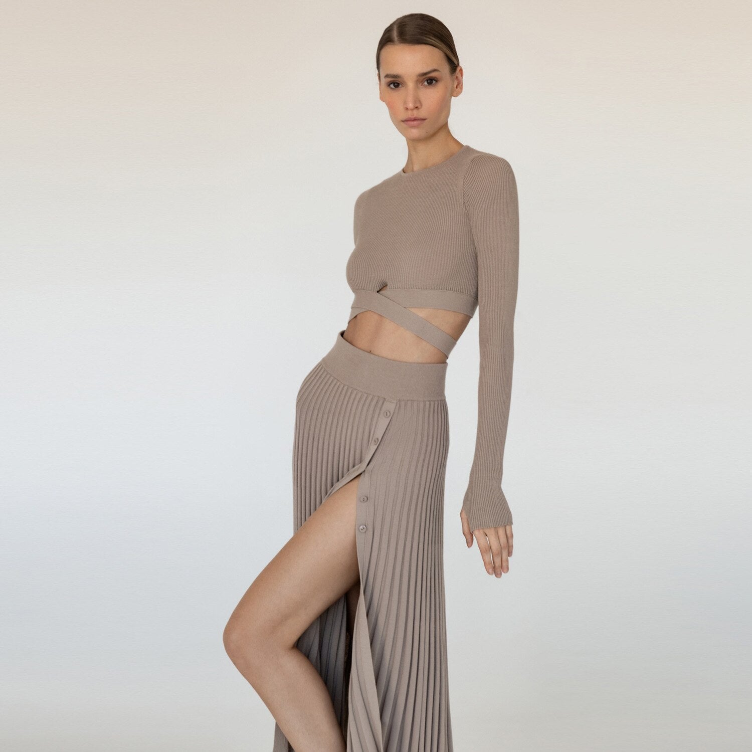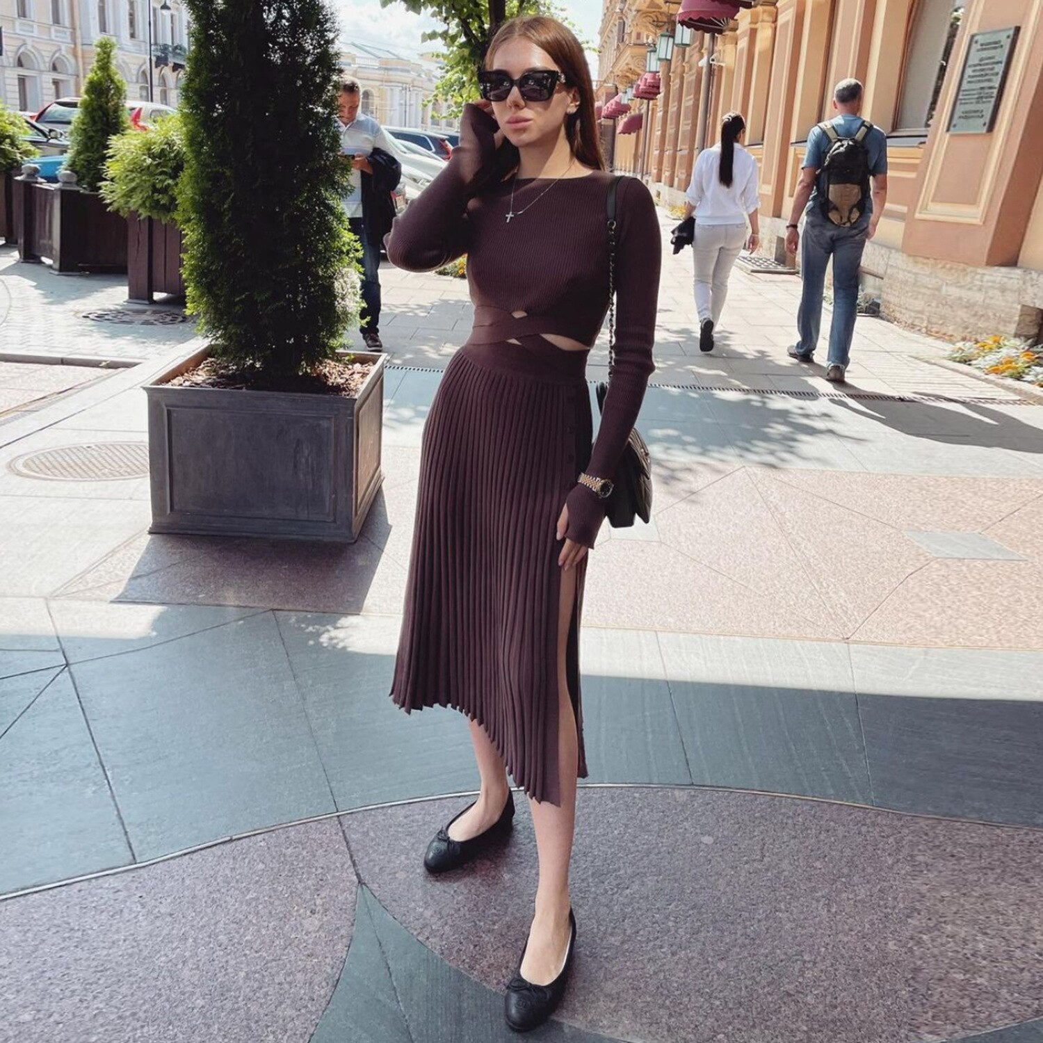Sexy Round Neck Short-sleeved Knitted Tight Suit Pleated Skirt Female Autumn Slim High Slit Lace-up Pullover Suit Top Vestido