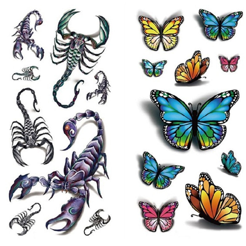 Waterproof Temporary Tattoo Sticker Butterfly Flower Rose 3D Scorpion Halloween Spider Body Art Arm Fake Tattoo Women