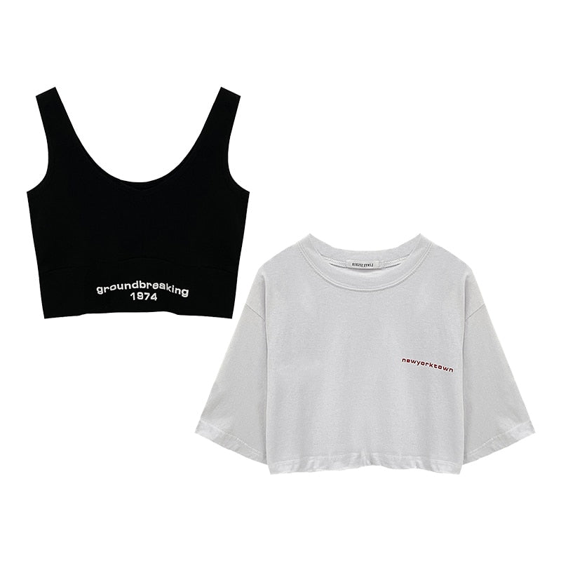 White Short Sleeved T-shirt Women Summer New Short High Waist Loose Crop Top Casual Basic Dancing Tees