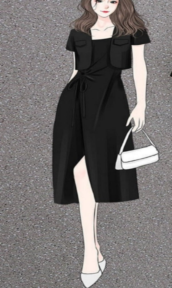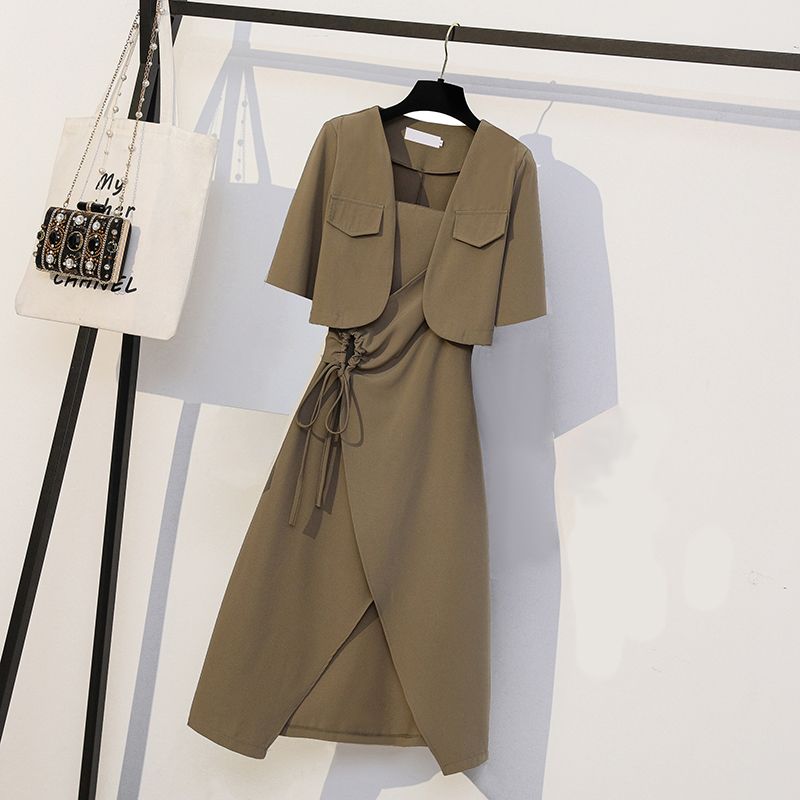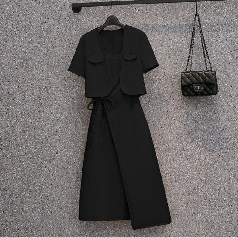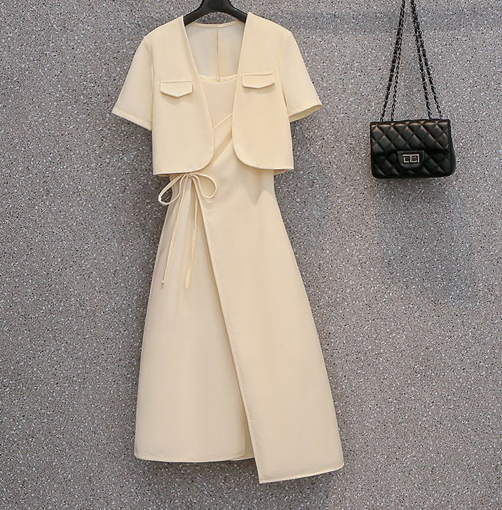 Women Dress Suit 2023 Summer New Fashion Short Coat Irregular Midi Suspender Skirt Two-piece Korean Elegant All-match Set