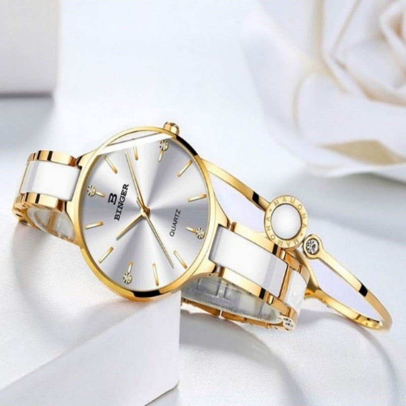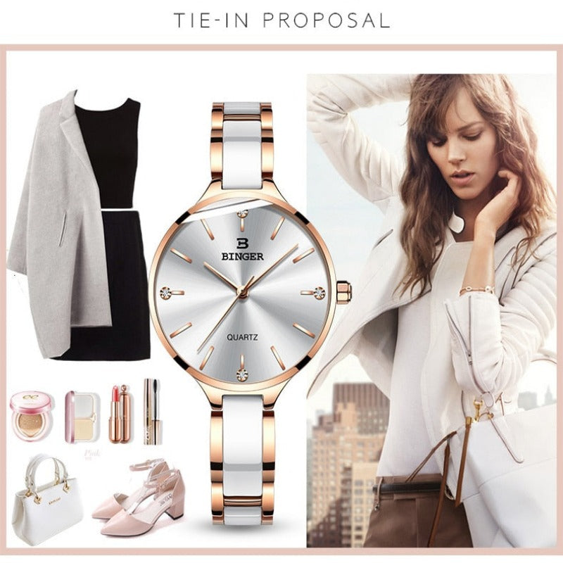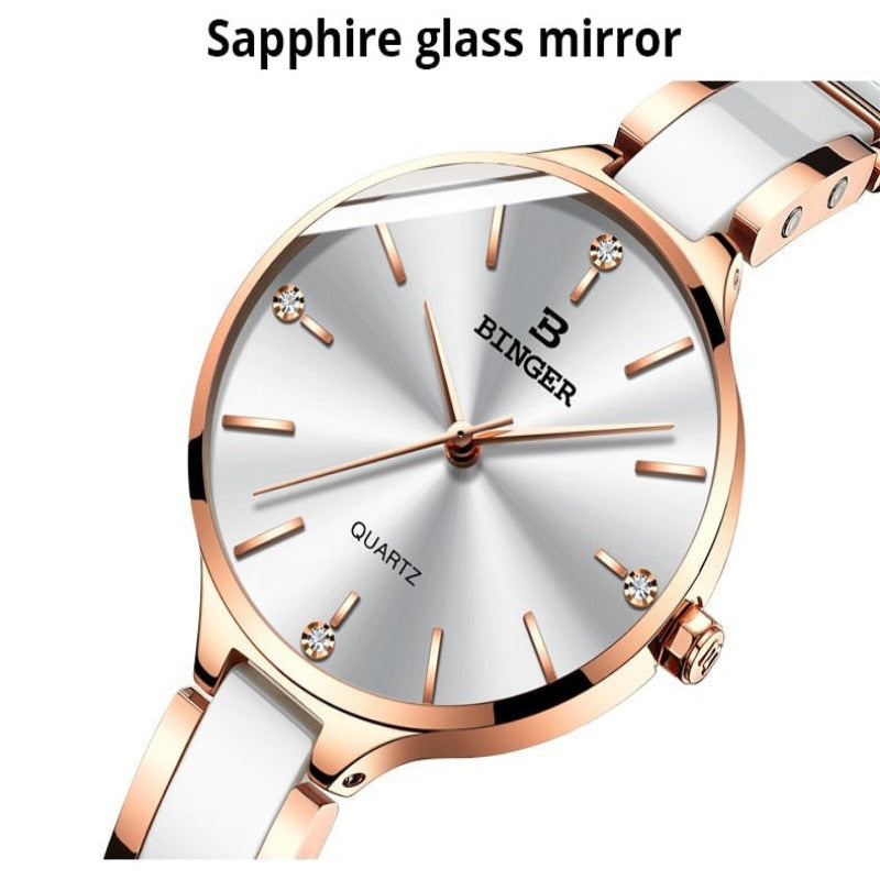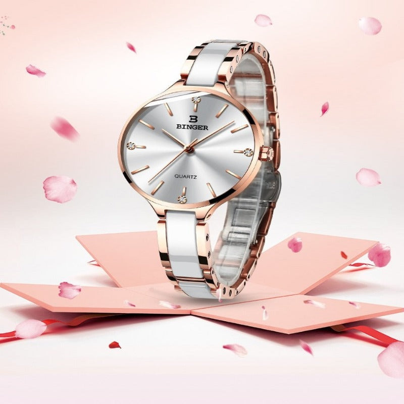luxurious timepiece Zegarek damski Switzerland BINGER Fashion Women Watch Luxury Brand Bracelets Ceramic Watch band Sapphire Waterproof Montre femme